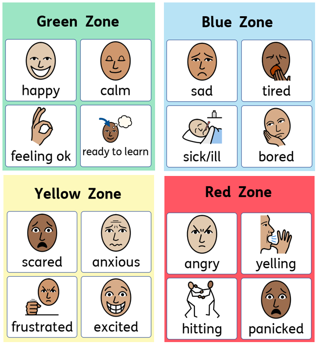 We teach pupils to identify their emotions using four coloured zones:
